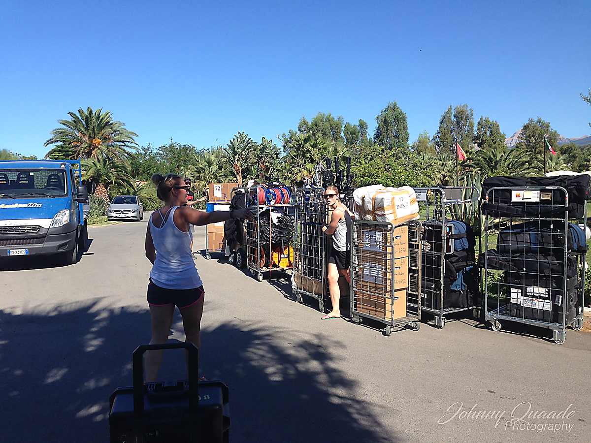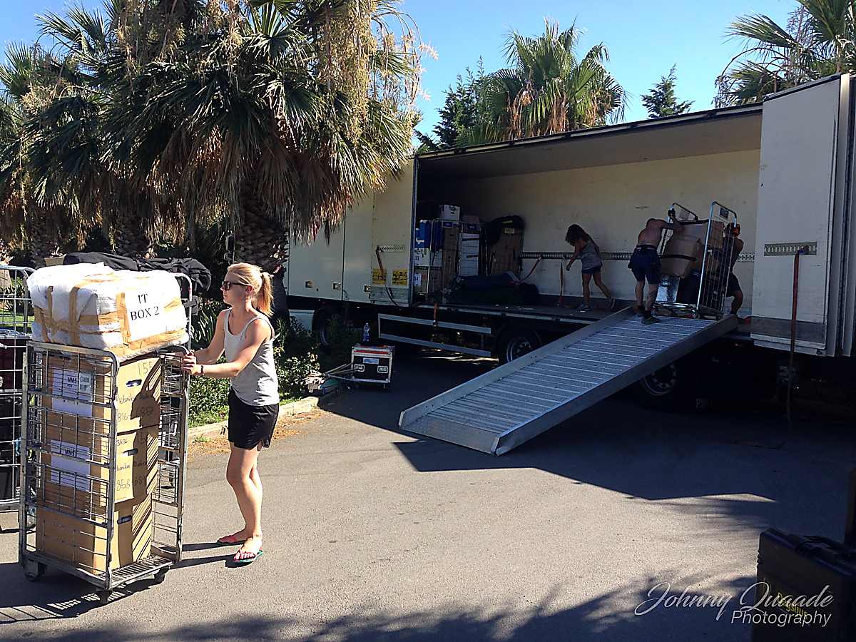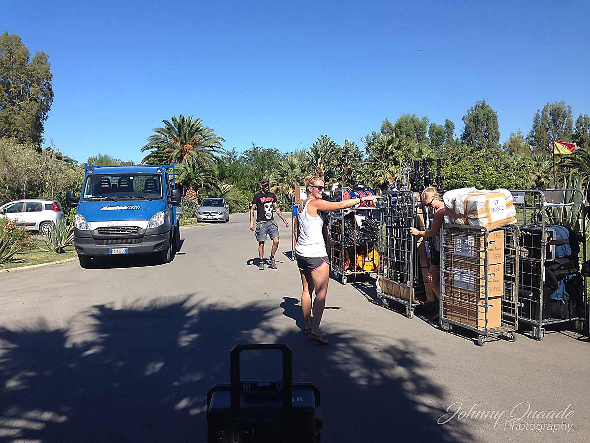 Väl framme i Palermo fanns Pontus Gårdinger på plats och var inte rädd att ti i när vi lossade hela trailerna med deras utrustning.