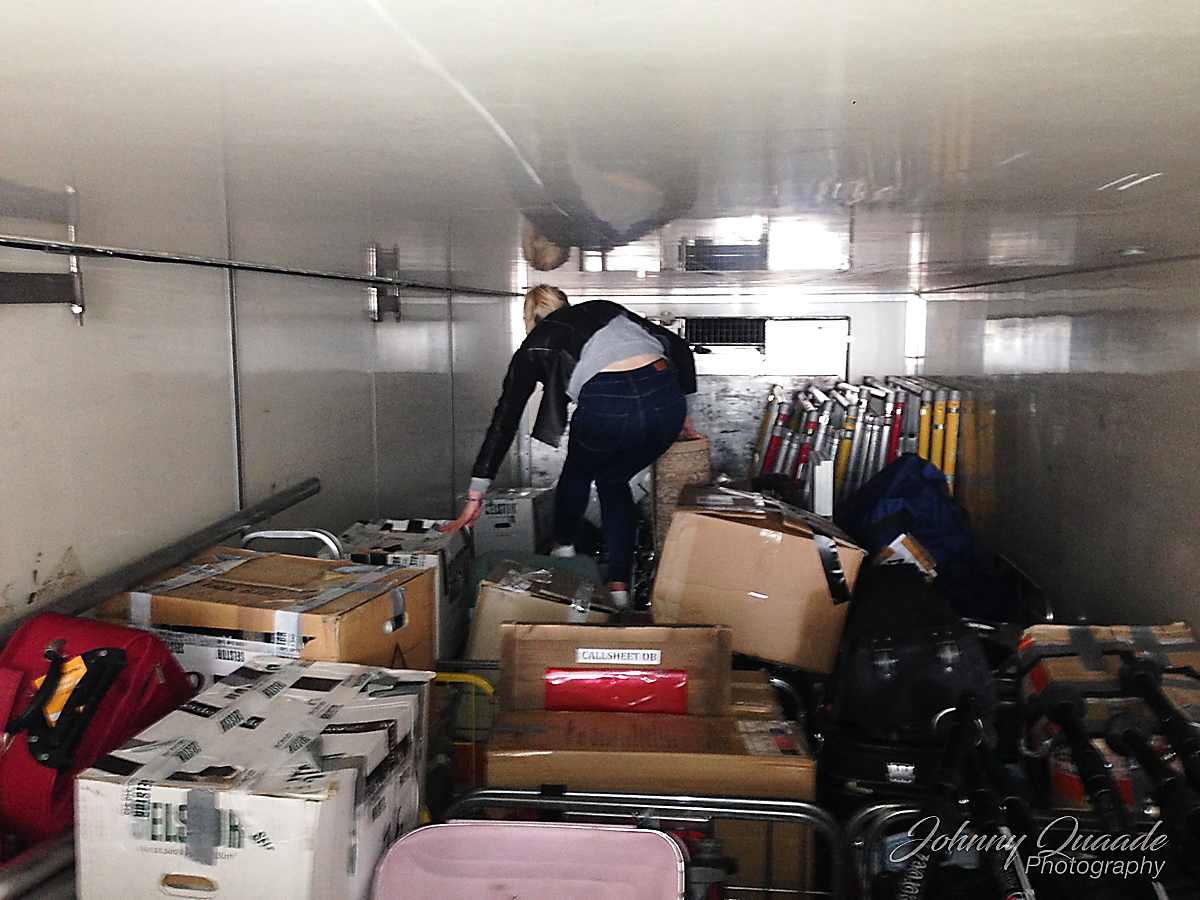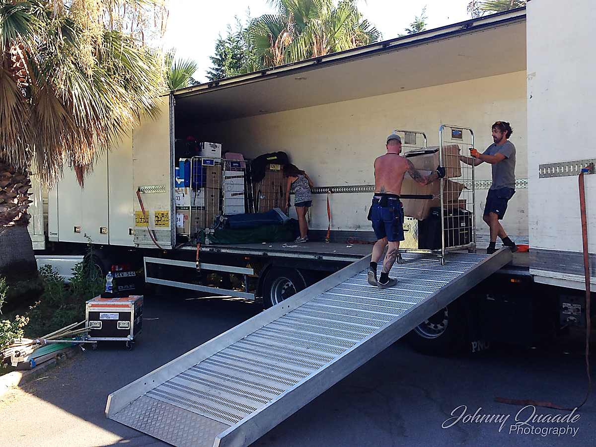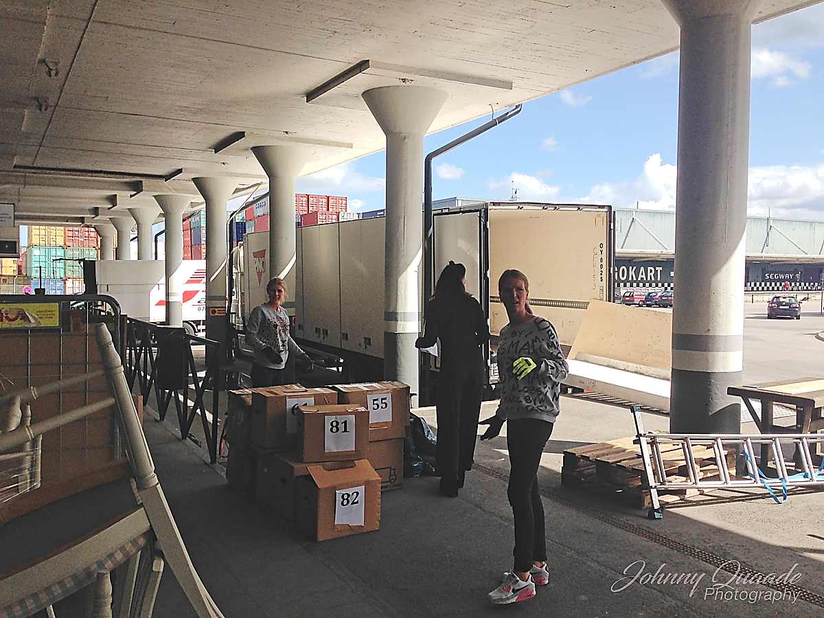 Väl framme i Palermo fanns Pontus Gårdinger på plats och var inte rädd att ti i när vi lossade hela trailerna med deras utrustning.